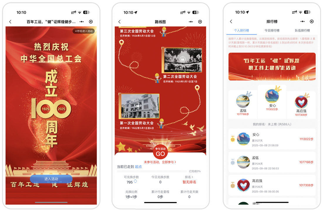 当历史的足迹与时代的步伐交汇,当奋斗的精神与健康的理念相融,我们怀着无比崇敬的心情,共同迎来“百年工运,‘健’证辉煌”职工线上健步走活动的启动时刻。此刻,无论你身处车间工位,还是忙碌在办公案前,让我们暂时停下手中的工作,一同回望百年工运的峥嵘岁月,共赴这场活力与信念交织的健行之约。
